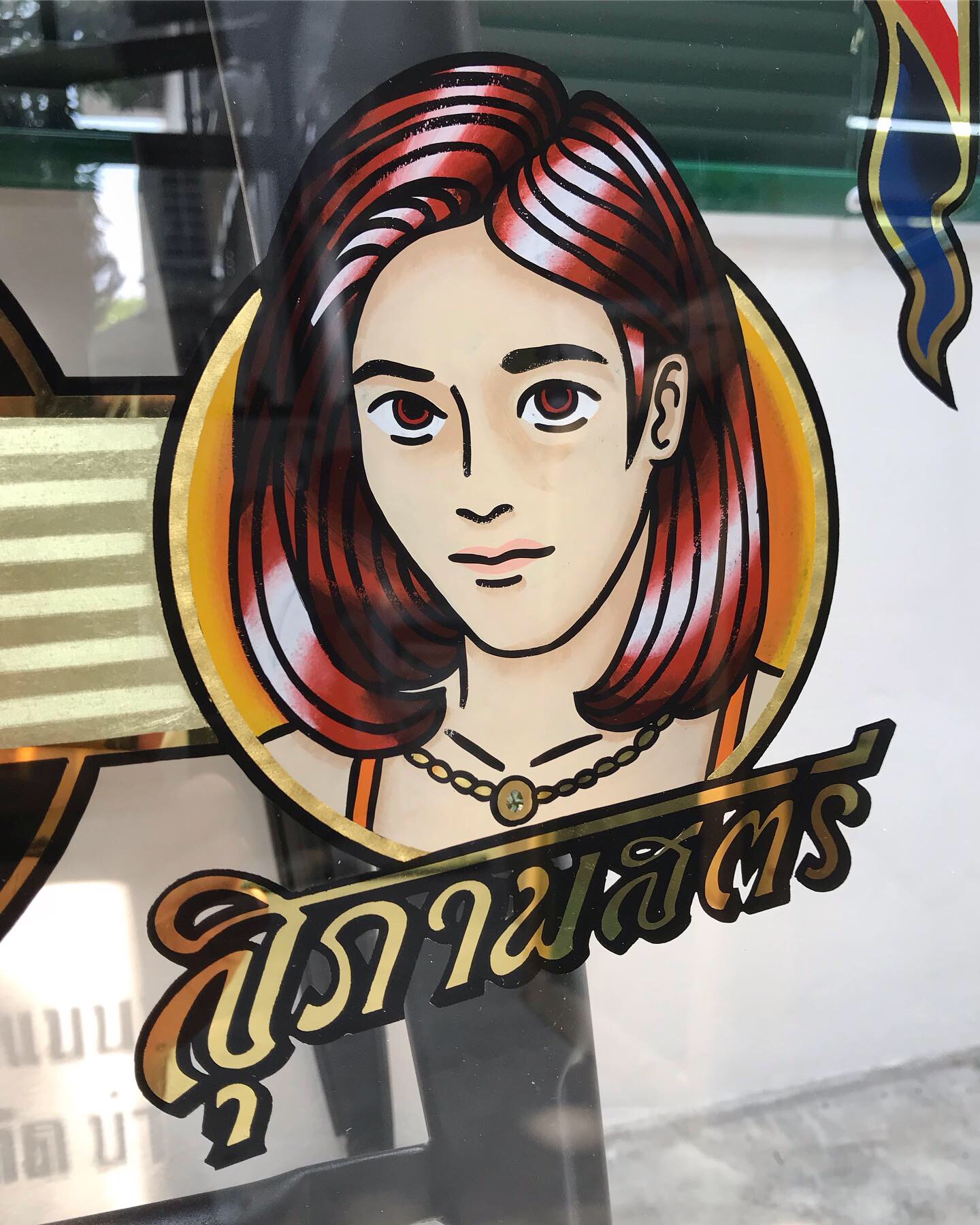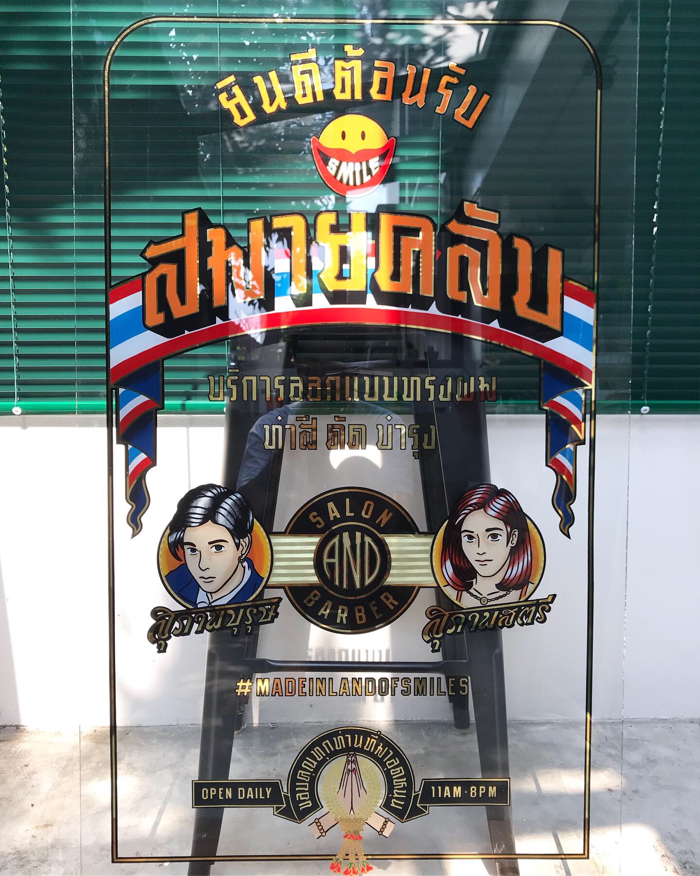 Design, gild and paint for Smile Club Thailnd shop front door.